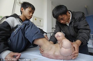 Los médicos del Hospital Infantil de Shanghai en el este de China han resultado ser una esperanza para el joven.Médico Yujin Tang dijo: ‘Podemos tratar la condición y que sea estable cuando tenemos la intención de reducir el tamaño de sus pies para que luzcan y se vean más normal “.